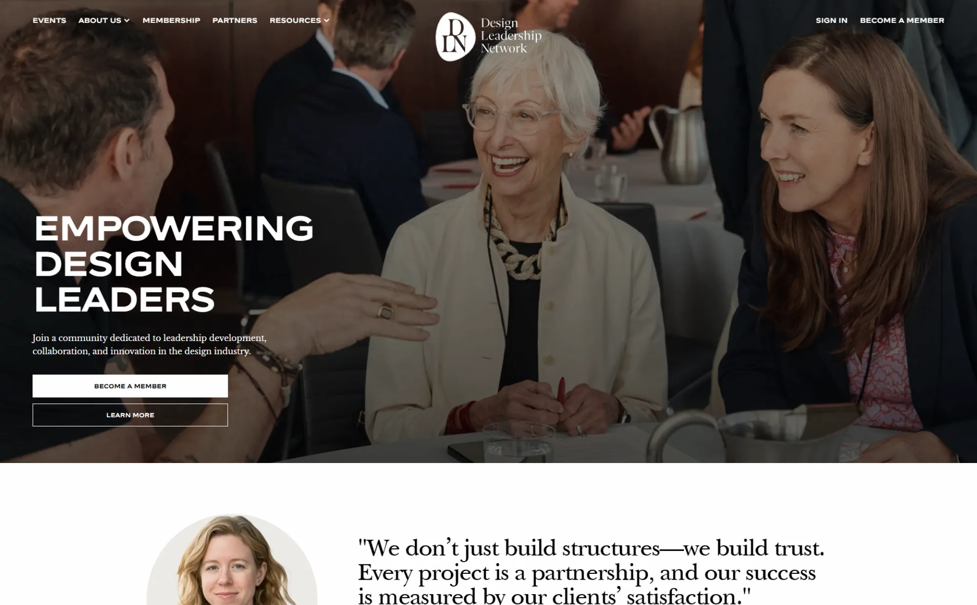 A complete website redesign and development project for DLN, a community dedicated to leadership development, collaboration and innovation in the design industry.